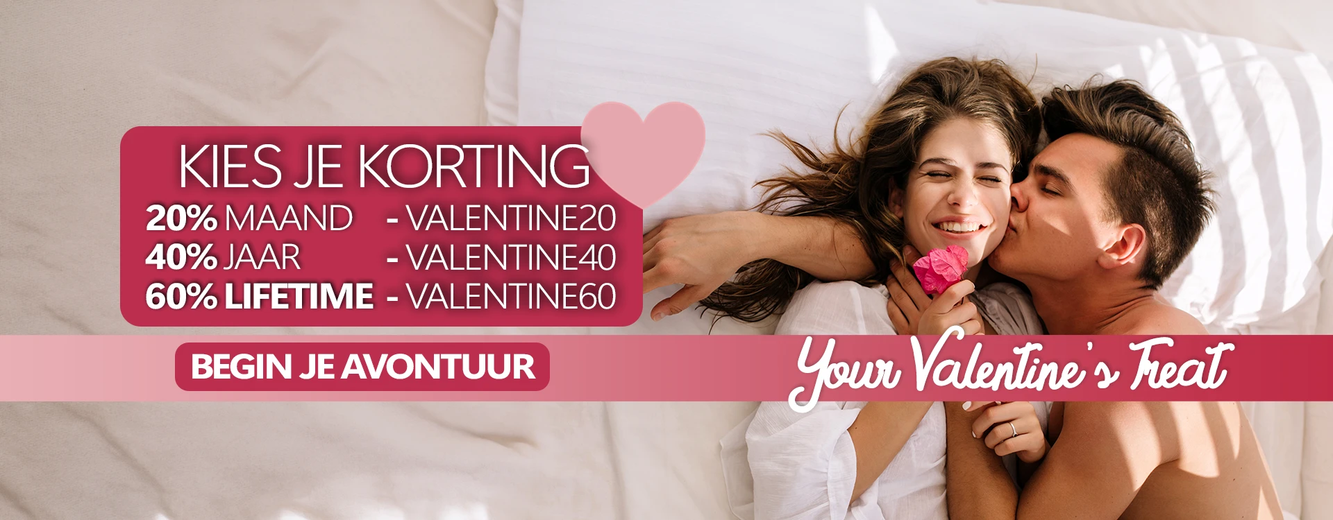 20% korting op een maandabonnement met code VALENTINE20